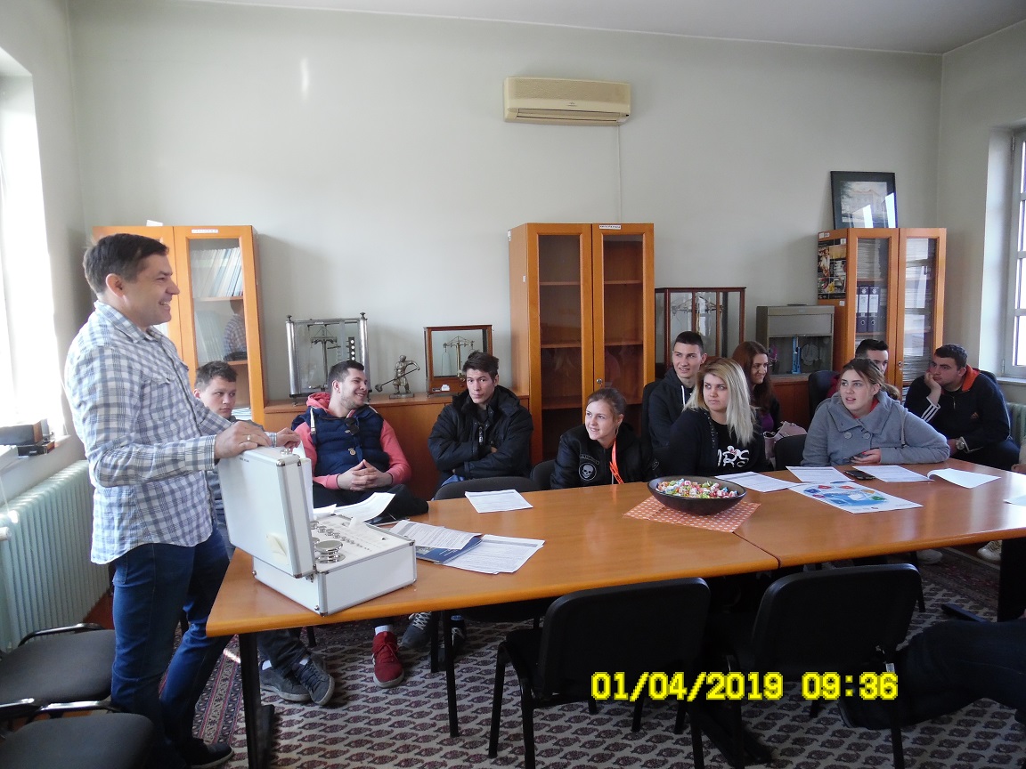 U susret Svetskom danu metrologije 2019. koji se ove godine obeležava pod sloganom „Međunarodni sistem jedinica, iz osnova bolji“, Direkciju za mere i dragocene metale, Odsek za kontrolu i nadzor u Kruševcu (u daljem tekstu: DMDM), 08. aprila 2019. godine posetili su učenici osnovne škole „ Sveti Sava“ sa Natašom Jasnić, nastavnicom fizike i učenici osnovne škole „Dositej Obradović“ sa Vesnom Živković, nastavnicom biologije.