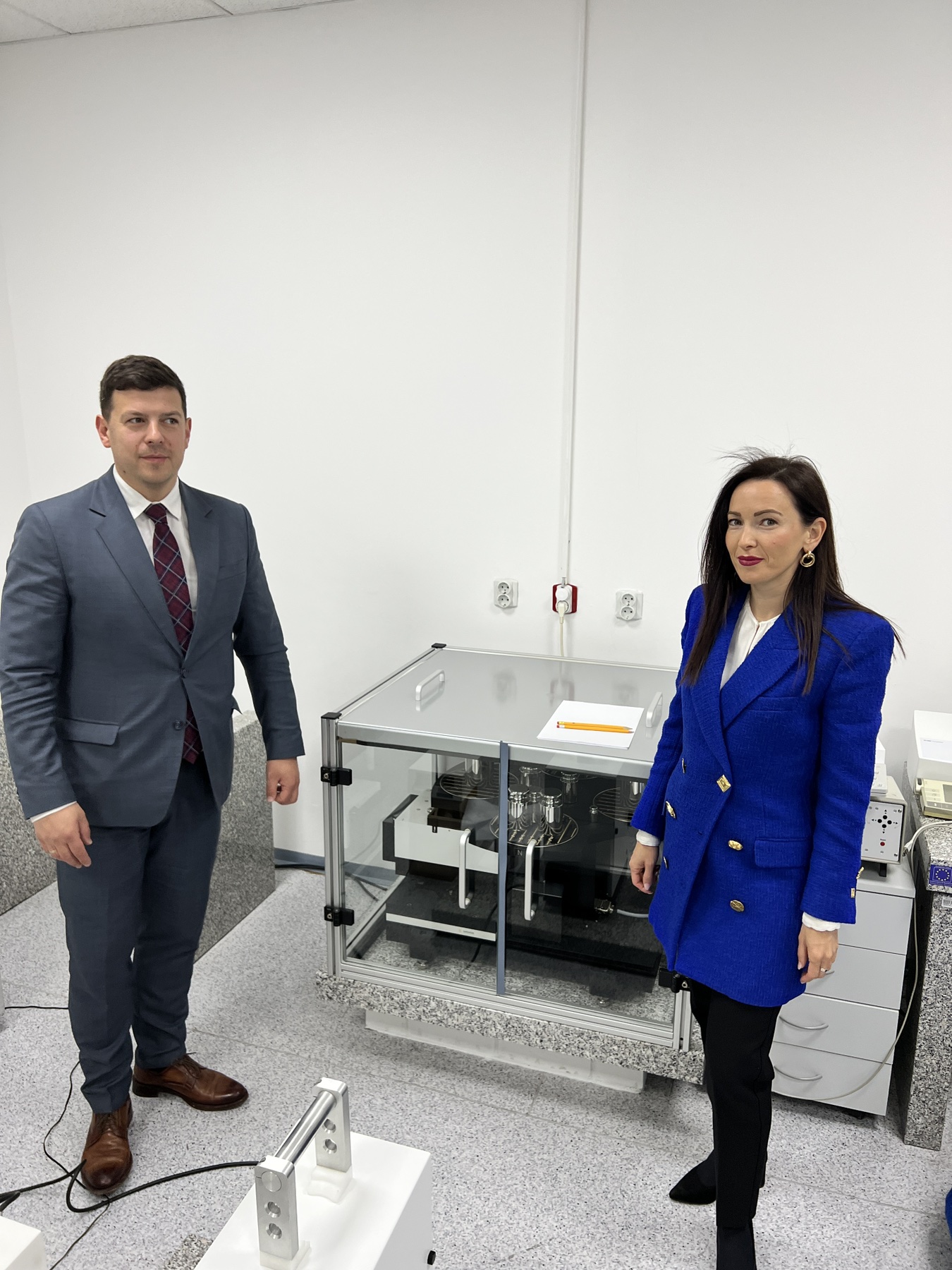 Gospođa Ristović Krstić je u pratnji Čedomira Belića, v. d. direktora DMDM i Nikole Petrovića, v. d. pomoćnika direktora za Sektor za razvoj metrologije, obišla laboratorije DMDM, gde se detaljno upoznala sa mernim mogućnostima i infrastrukturom ovih laboratorija. Razmena iskustava i ideja predstavljala je ključni deo posete, s ciljem unapređenja kvaliteta merenja i uspostavljanja visokih standarda u oblasti metrologije.