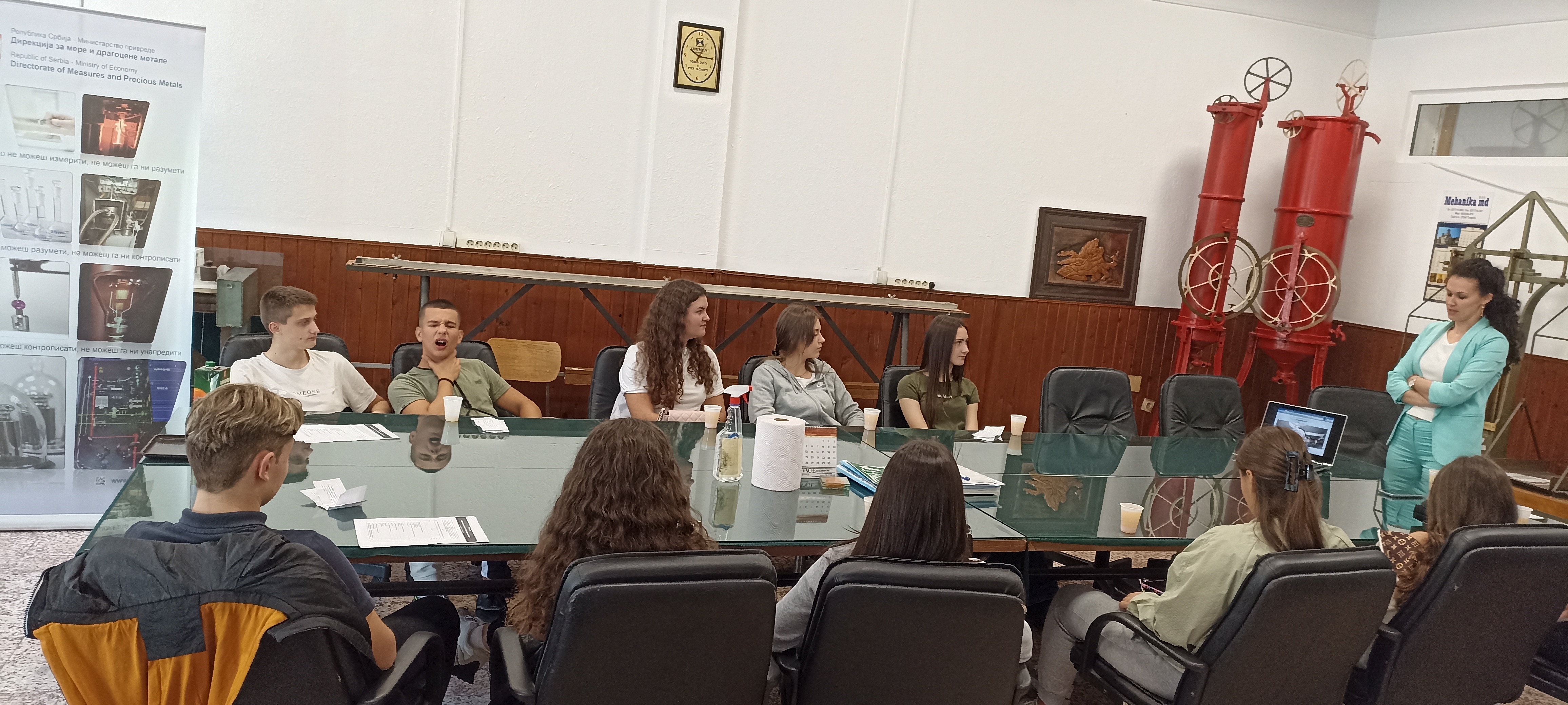 Posetioce je dočekala Dragana Milićević, šef Odseka za metrološku inspekciju Kruševac, i tom prilikom ih upoznala sa istorijatom ustanove, prvim Zakonom o merama, metarskom konvencijom, kao i ovogodišnjim jubilejom kojim DMDM obeležava 150 godina metrologije u Srbiji.